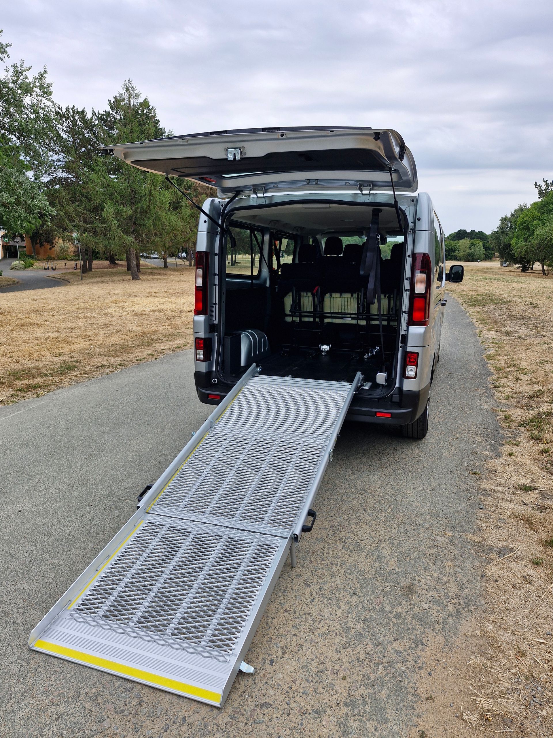 Je vous présente notre Renault Trafic 9 Places (8+1 chauffeur) équipé TPMR pour transports toutes distances en France et en Europe.